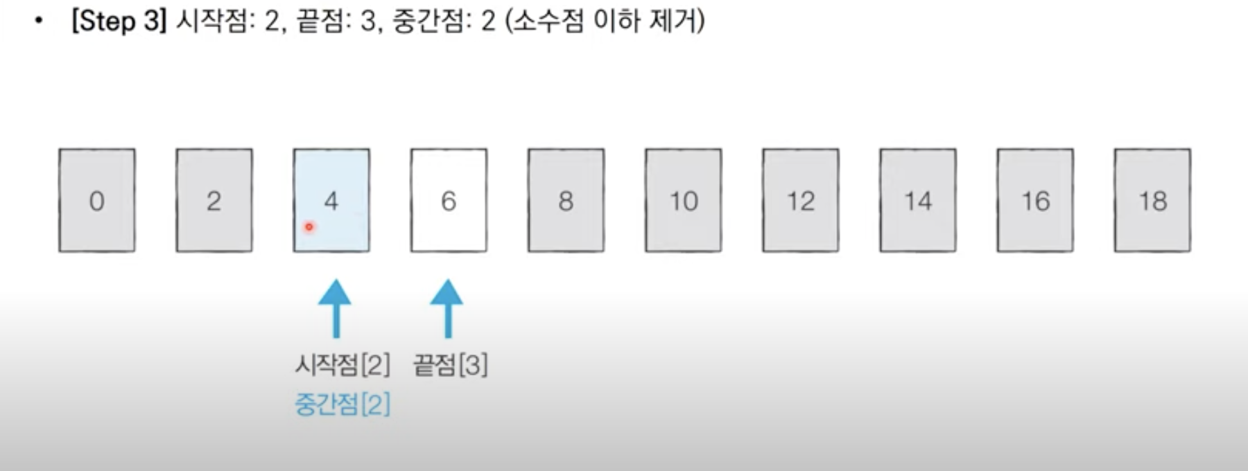- 시작점, 중간점, 끝점을 이용하여 탐색 범위를 설정