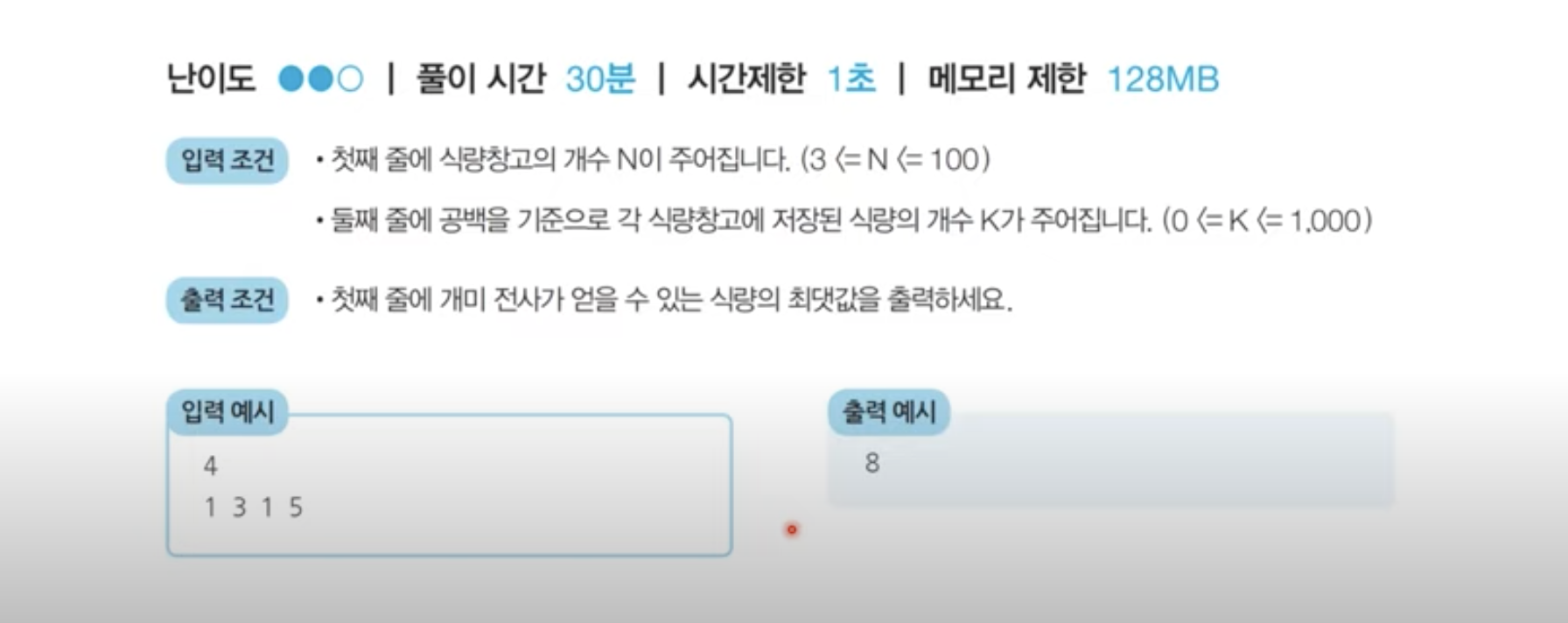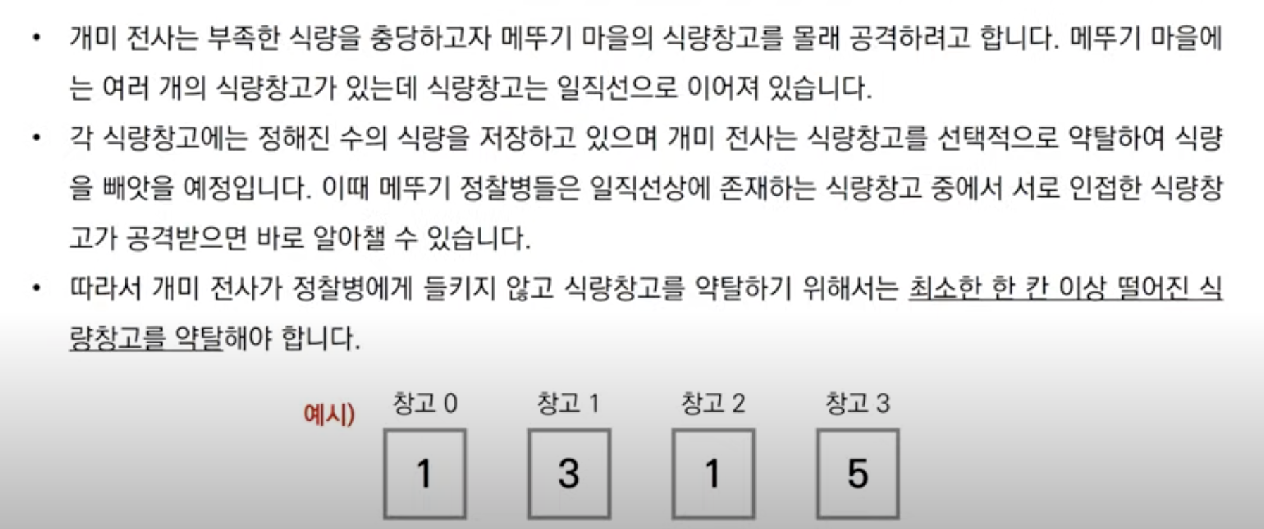 다이나믹 프로그래밍 문제1: 개미 전사