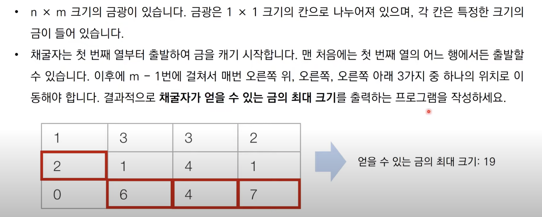 DP문제 4: 금광