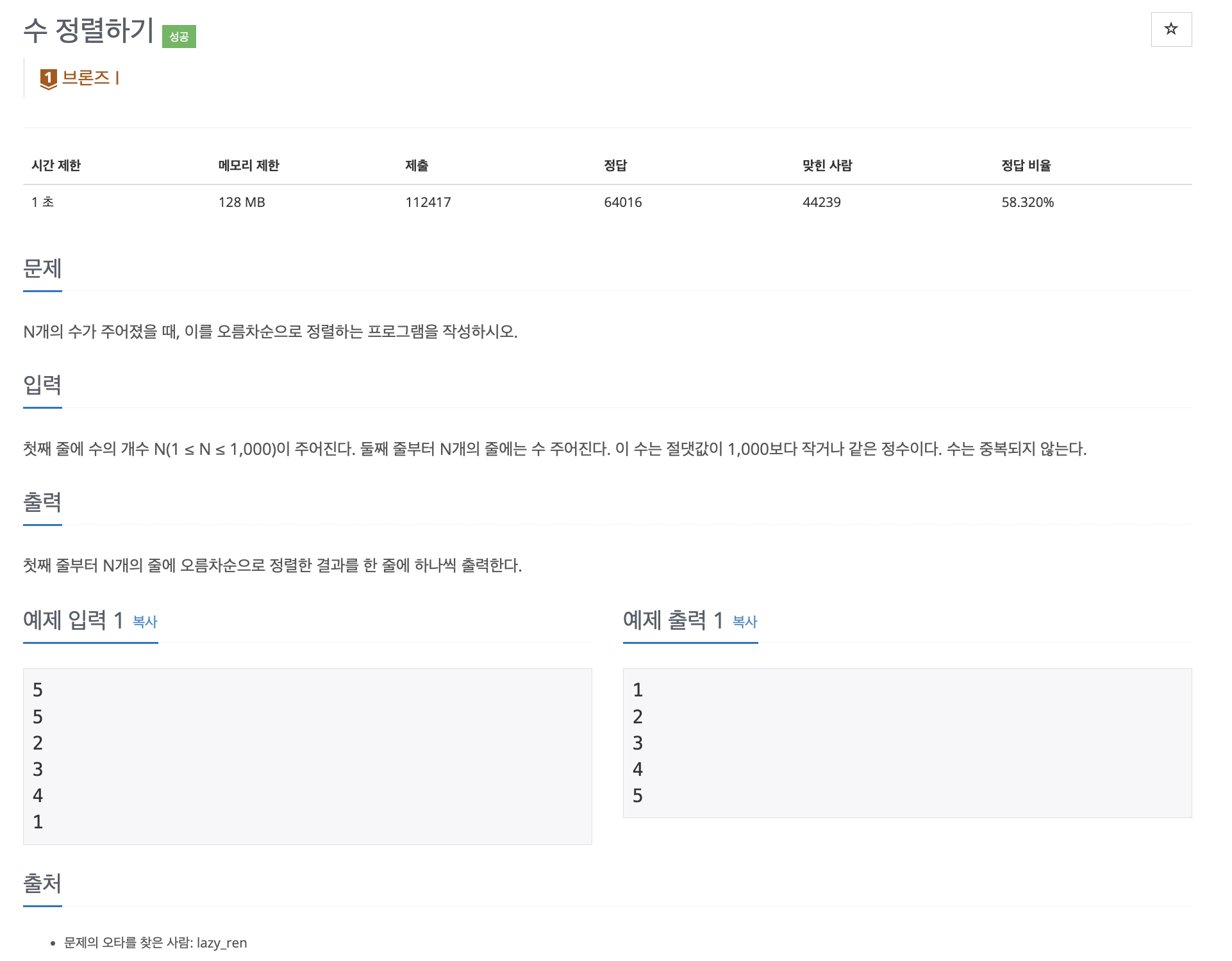 '백준 문제풀이 > 정렬(Sort)' 카테고리의 다른 글